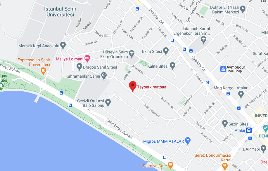 orhantepe mah, Kamp Yolu Cd. No 63 /14 D:kat 6, 34865 Kartal/İstanbul Tel: +905494419192 E-mail: info@tayberk.com